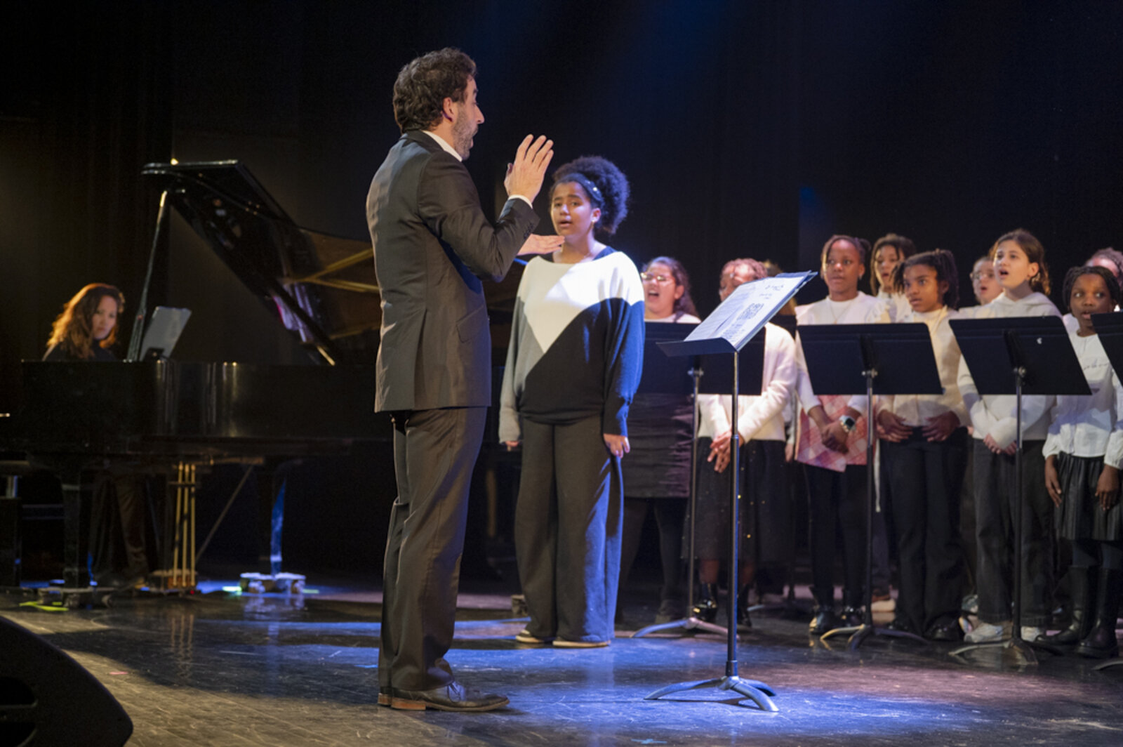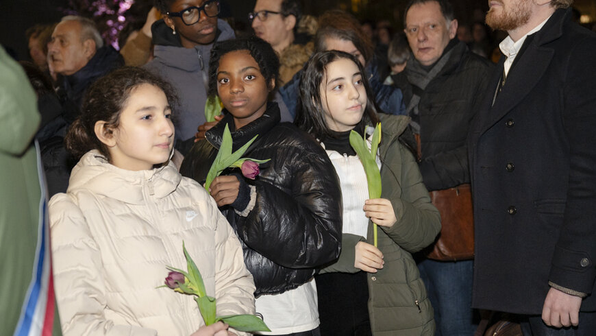 Tel était l’esprit de cet hommage. Jeudi soir, chacun était invité à déposer une tulipe au pied de la stèle érigée dans le jardin Ilan Halimi, au cœur du quartier de la Pierre-Plate. Puis la foule s’est dirigée vers le Théâtre Victor-Hugo pour une soirée artistique conçue par la Maison de la musique et de la danse, le Théâtre Victor-Hugo, les collèges Henri-Barbusse et Joliot-Curie, les classes CHAM des CM2 Maurice-Thorez et Paul-Vaillant-Couturier, ainsi que la compagnie Mimesis.