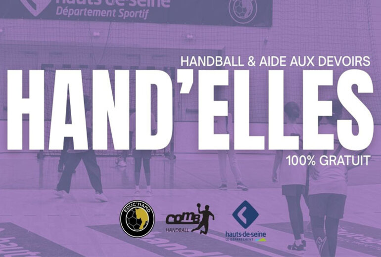 Déployé depuis septembre 2024 sur Bagneux, le programme Hand’elles est géré par la section handball du COMB. Sur la saison 2024/2025, une vingtaine de filles étaient présentes à chaque séance, et 5 d’entre elles ont pris une licence à l’issue avec la section handball du COMB. Les séances ont lieu le samedi, de 14h15 à 16h15, au gymnase Henri Wallon (handball) et au CSC Jacques-Prévert (aide aux devoirs) et sont encadrées par deux éducatrices sportives.