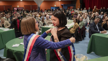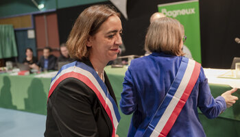 Samedi 21 mars 2026, s'est tenu le conseil municipal d'installation qui a élu officiellement Hélène Cillières, maire de Bagneux. C'est avec émotion, fierté et un grand honneur que Madame la Maire a reçu des mains de Marie-Hélène Amiable, Maire sortante, l'écharpe tricolore.